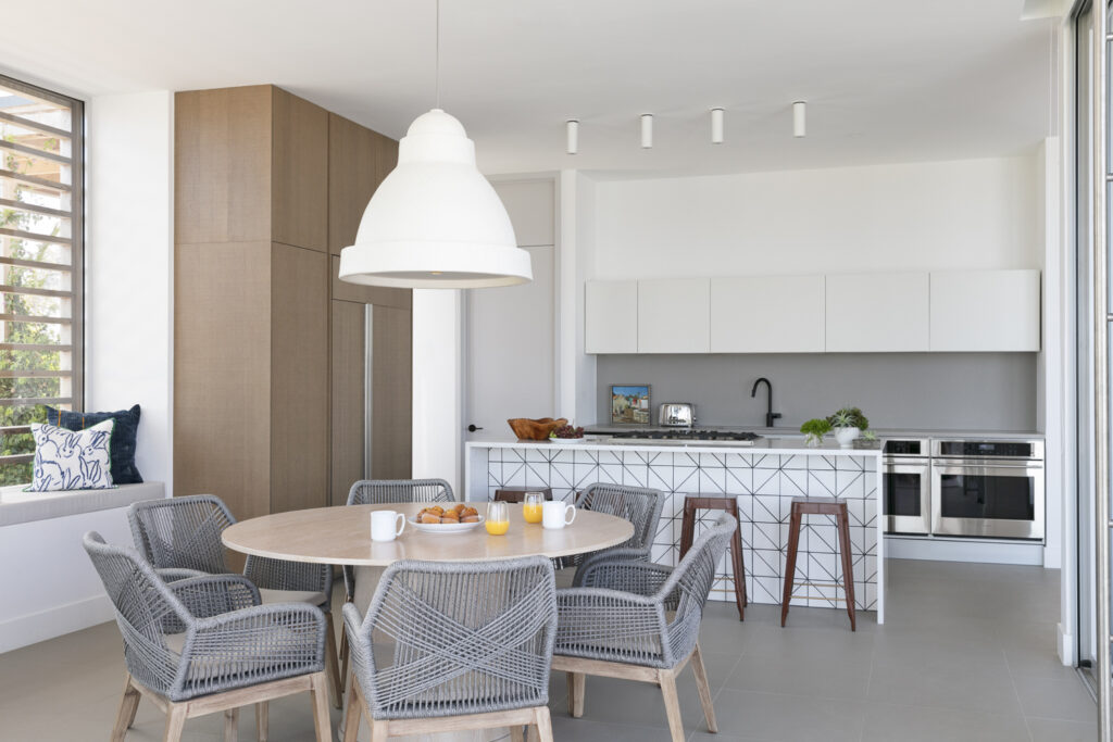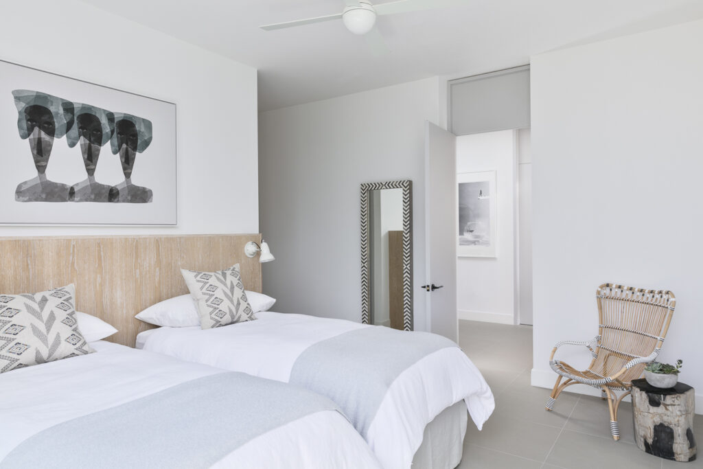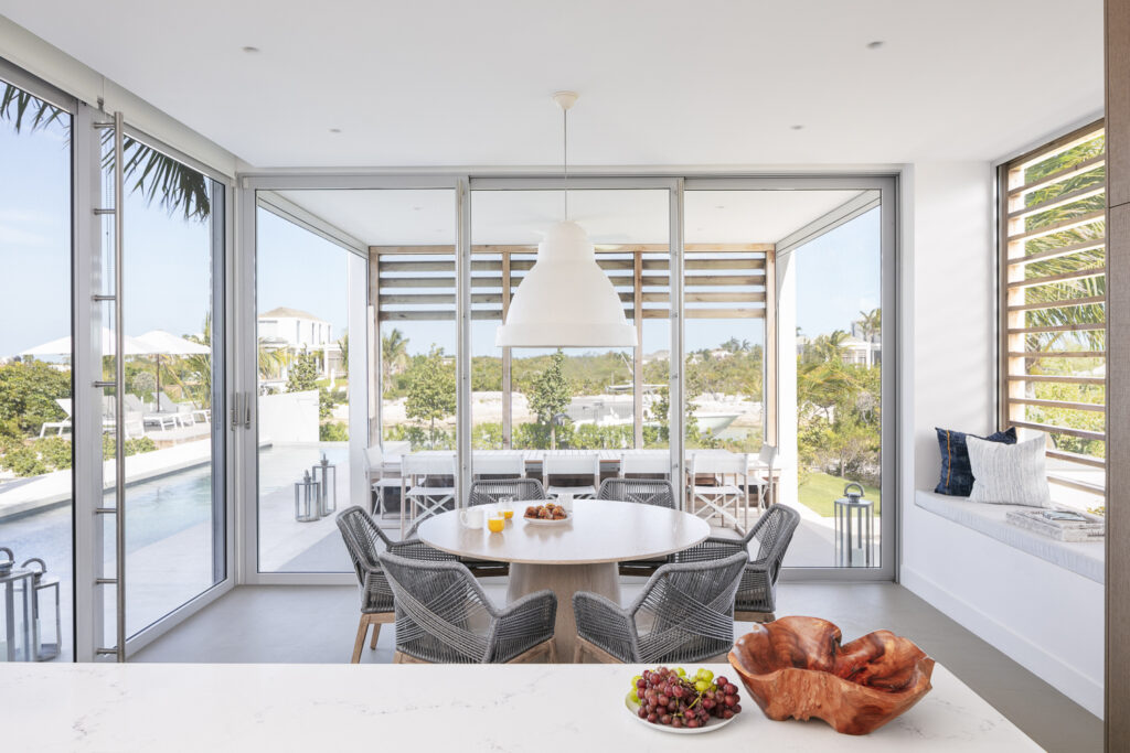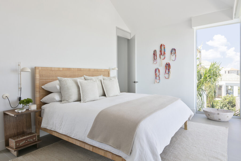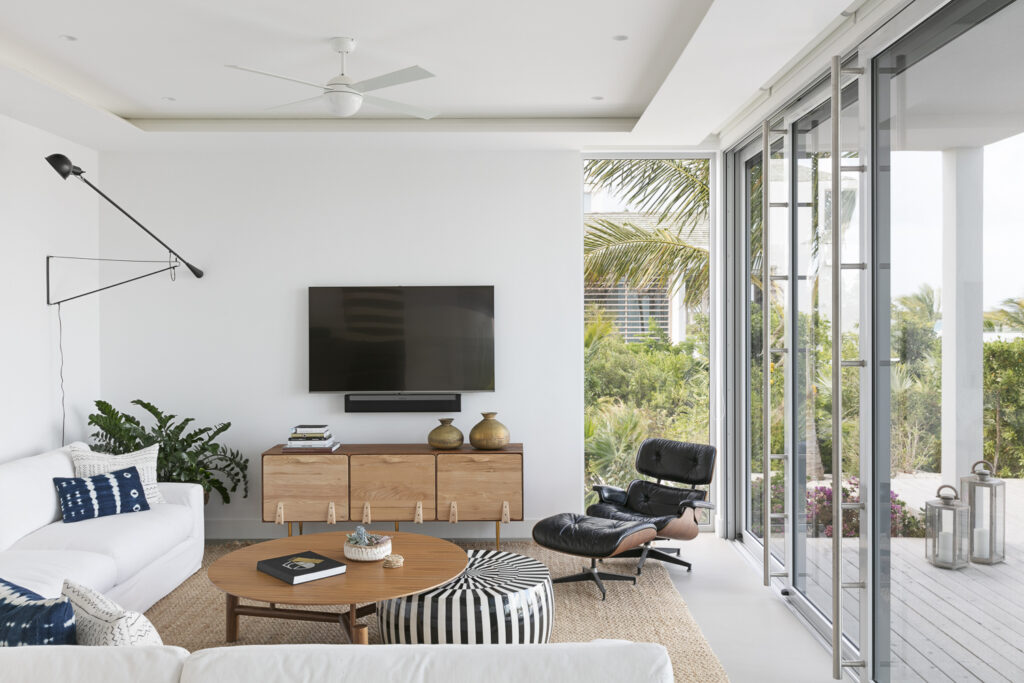 Working closely with the homeowners, Domino Creative furnished this canal-front residence with a playful blend of new custom furniture and vintage pieces in order to create an eclectic blend where African baskets and modern icons live beautifully side by side.