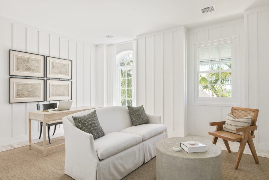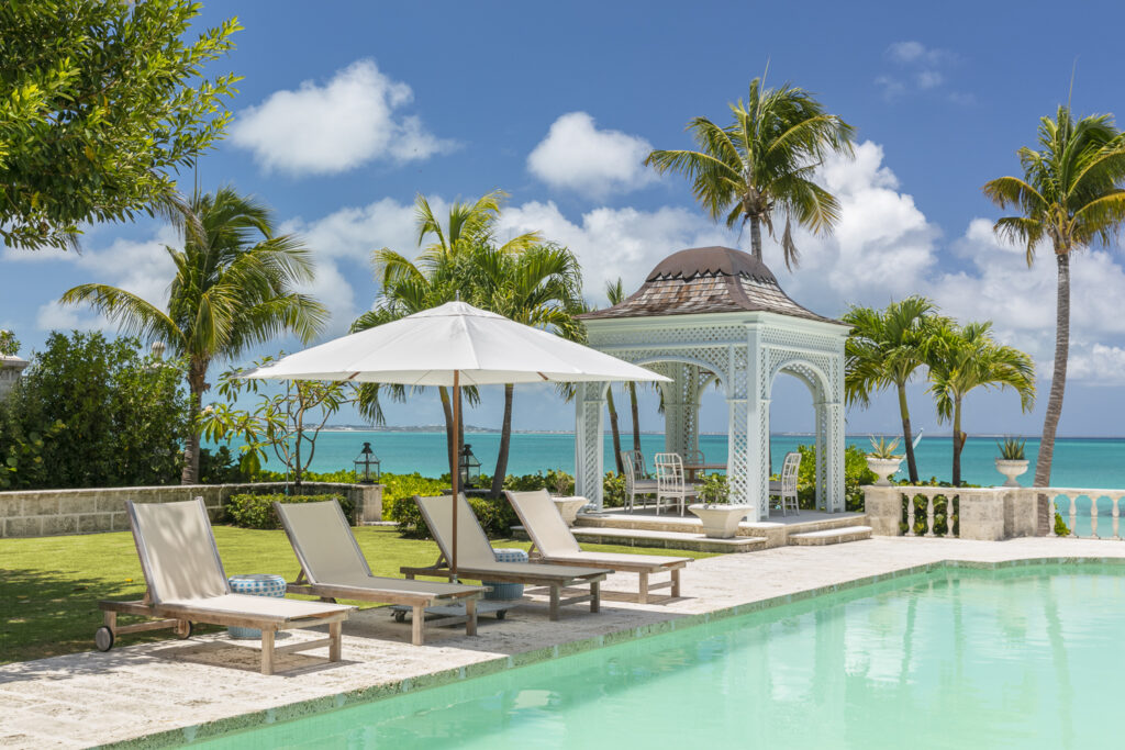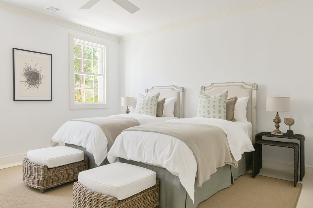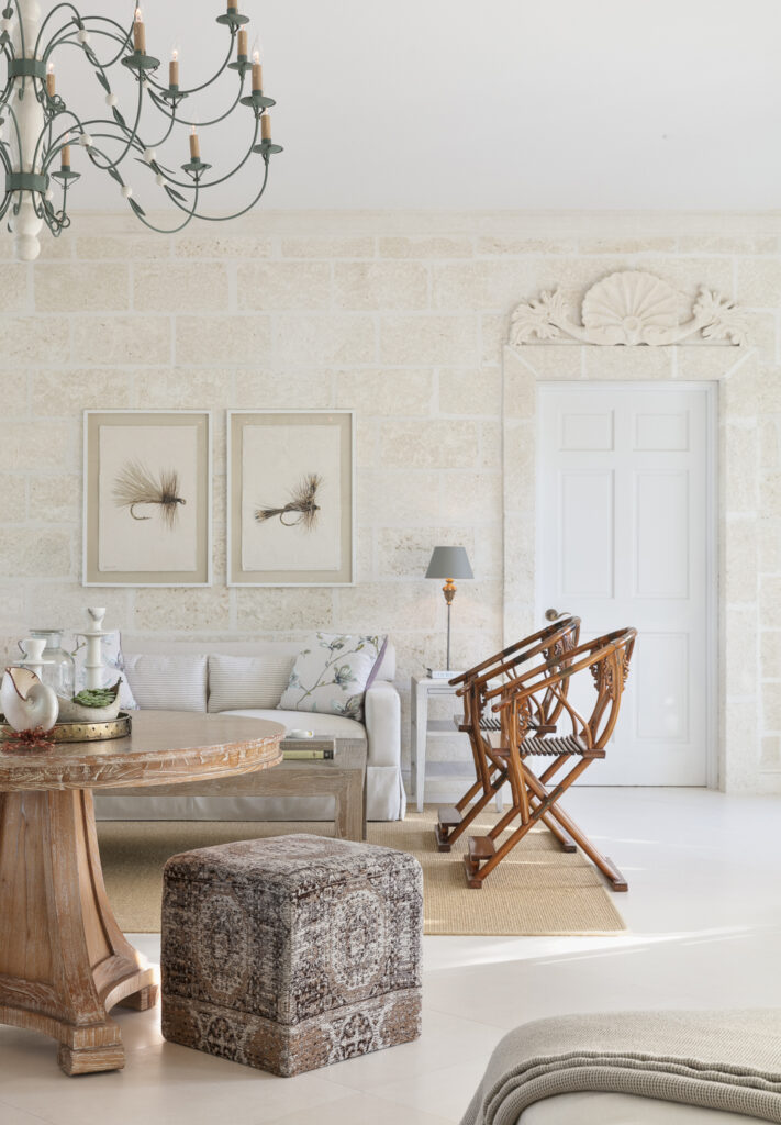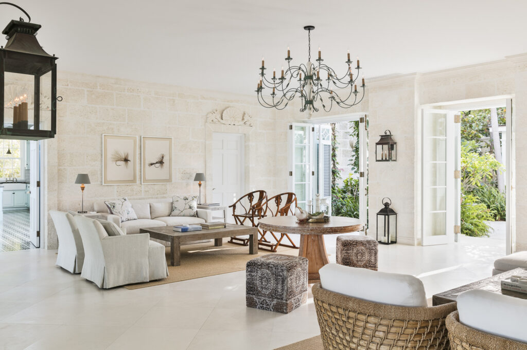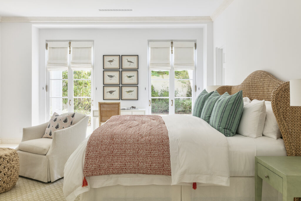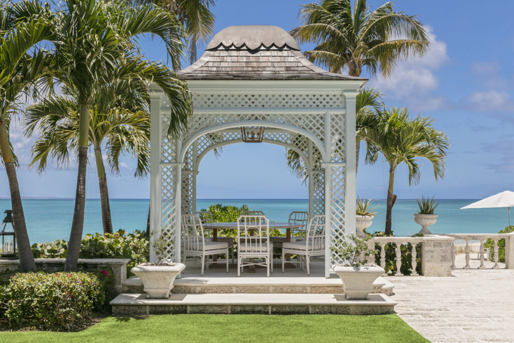 Finding inspiration from the Oliver Messel style villa, Domino Creative furnished this oceanfront property with a blend of occidental classics, like a four-poster mahogany bed, and Indian treasures, like inlaid bone dresser, to create a distinctly West Indian gem.